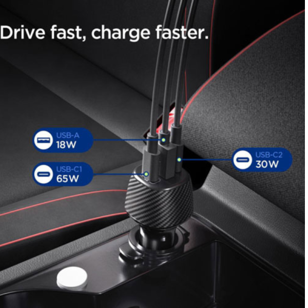 Φορτιστής Αυτοκινήτου ESSENTIAL με 1 Θύρα USB & 2 Θύρες Type-C 113W Μαύρο Σώμα